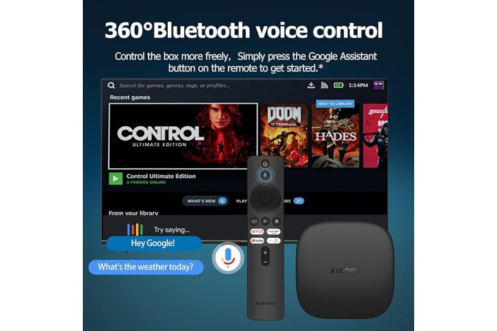 Sesli Komut: Kumanda üzerindeki Google Asistan tuşu ile içerik arama ve akıllı ev cihazlarını kontrol etme imkanı sunar.